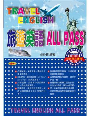 = Travel engish all pass / 徐仲賢編著 - 初版. - 新北市三峽區 : 易可數位行銷總經銷, 2012[民101]. - 373面 ; 圖,書影,表格 ; 23公分. - (TOP英文系列 ; T002).